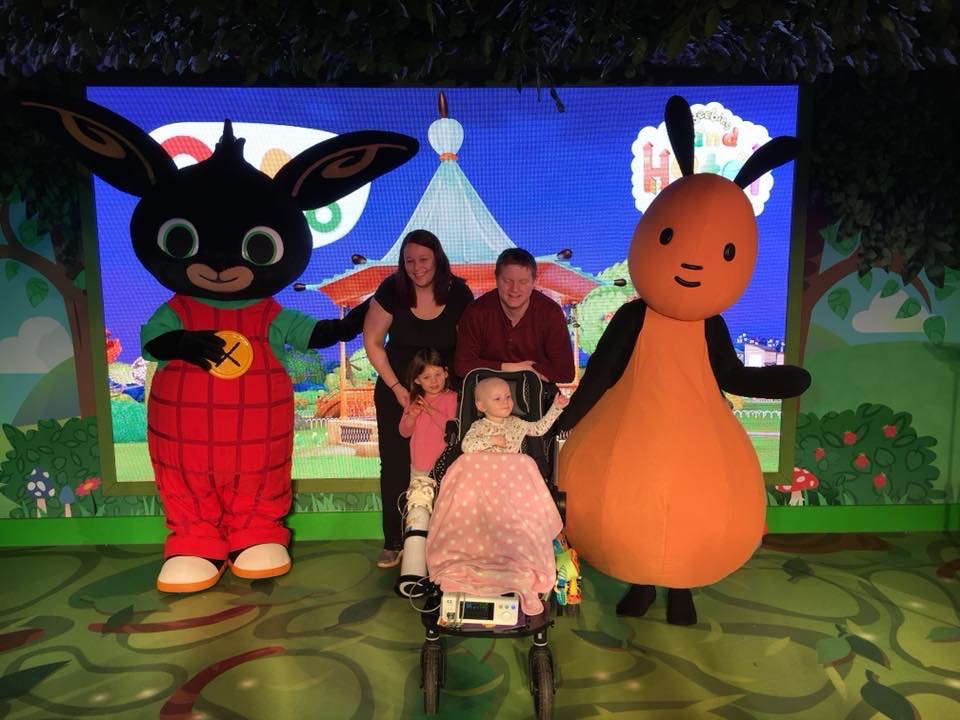 Little Billie has spent most of her short life in hospital. We are always aware of the impact for siblings in this situation and with the need to act quickly, arranged an overnight stay at CBeebies land at Alton Towers for Billie, her sister and mommy and daddy. They were able to make some wonderful memories with the CBeebies characters visiting their room to read bedtime stories, and lots of activities over the two days, in which to gather many photos and videos.