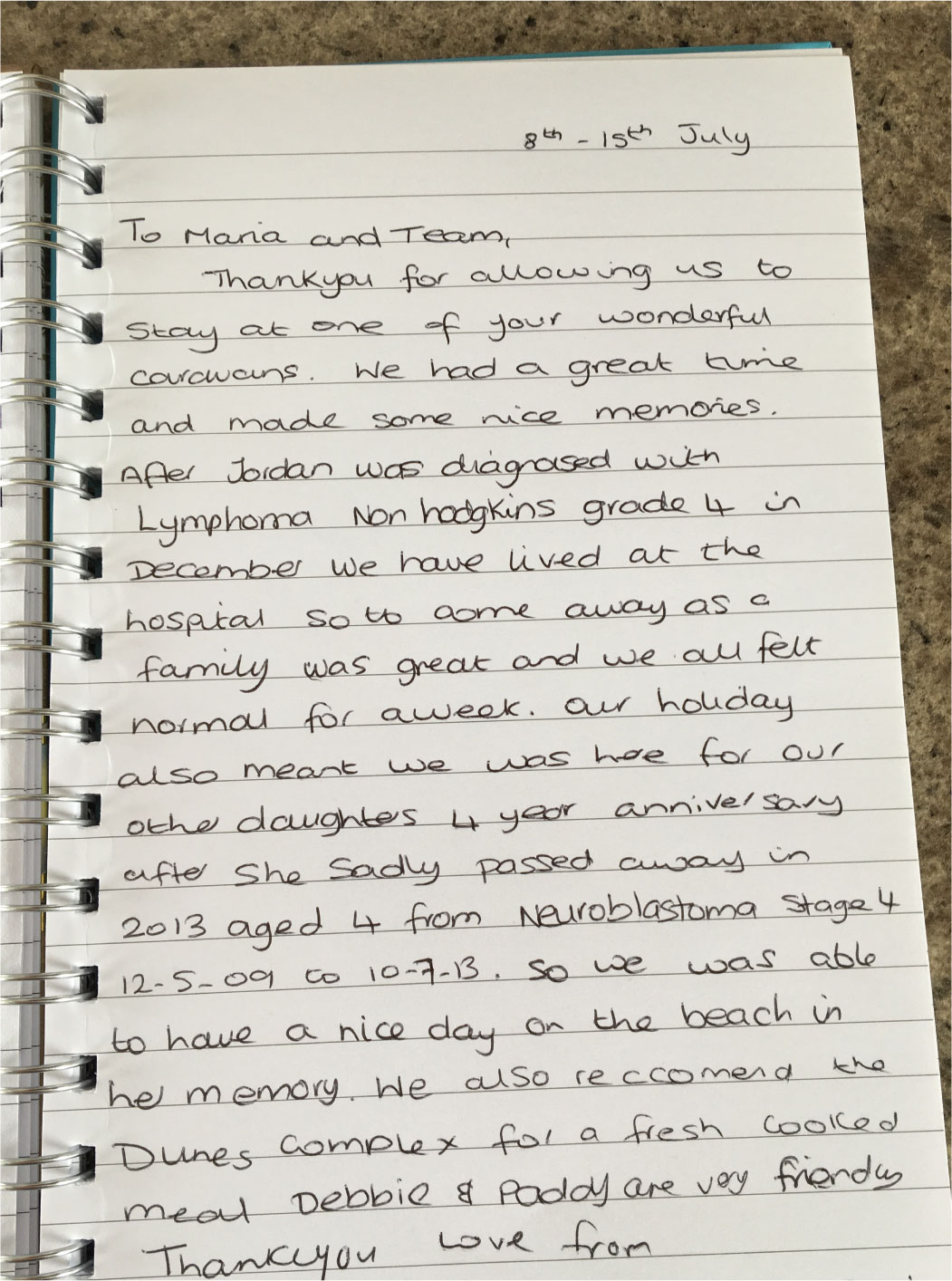 We always leave a book in our holiday home, somewhere that people can leave a little message, somewhere that they can tell us of the memories they have made.
